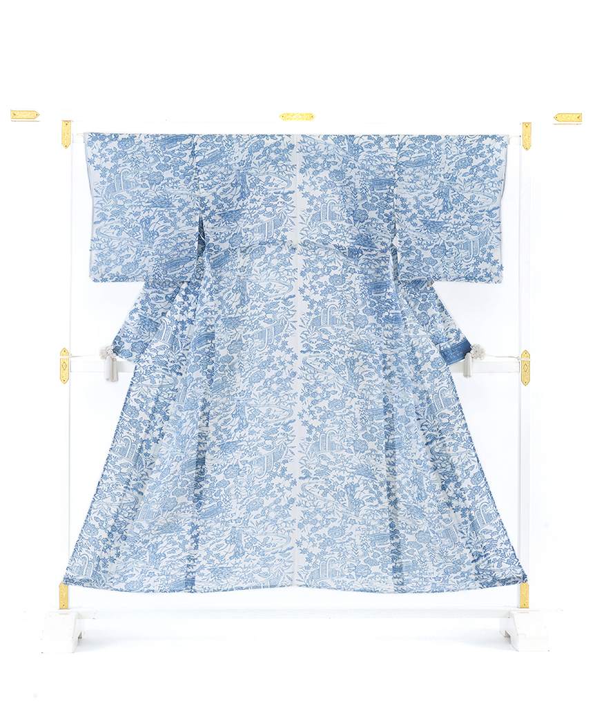 千葉あやのさんは、「正藍染」の重要無形文化財保持者であり、人間国宝に指定された着物作家でした。千葉あやのさんが行う「正藍染」は、自然の温度で藍を発酵させることで生まれる暖かみのある色彩が特徴の草木染めの技法です。彼女は1889年に宮城県栗原郡に生まれ、幼少期から機織りの技術に優れていました。1909年に千葉家に嫁いだことをきっかけに、義母から藍染めの技法を学び、1955年には「正藍染」の保持者として指定されました。 「正藍染」の技法は、藍・麻の栽培から糸作り、染め、機織りまで、全ての工程を1人で手掛けます。現在も「正藍染」の人間国宝は千葉あやのさんただ一人であり、彼女の自家製作体制と高度な技術力は高く評価されています。彼女が手がける作品は全て手作業で行われ、素朴で優しい風合いが特徴です。 千葉あやのさんの麻織には、神事に用いられる大麻が使用されます。また、「正藍染」は自然発酵で染められるため、染めが行われる期間は非常に短く、作品は非常に貴重です。現在、千葉あやのさんの技術は彼女の娘である千葉よしのさんと、孫である千葉まつ江さんによって受け継がれ、まつ江さんが「正藍染」の着物を制作しています。