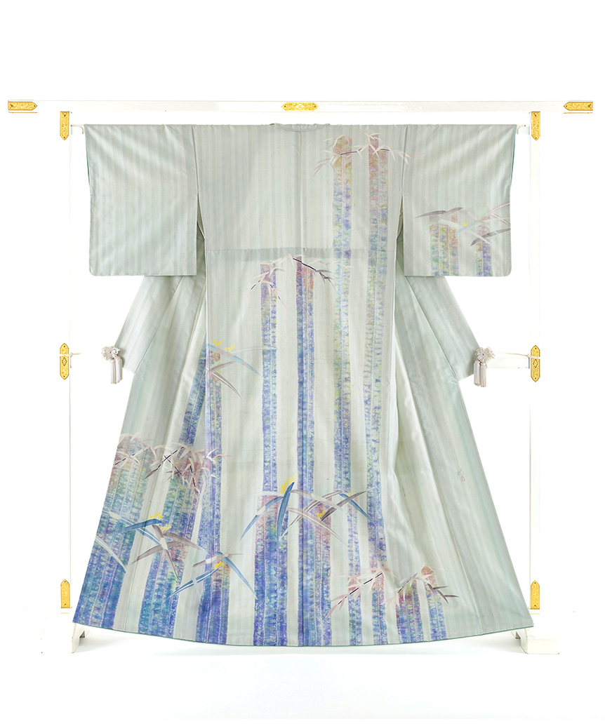 木原明さんは、小倉建亮さんに師事し、その後辻ヶ花染めから学んだ絞りと友禅の両方を併用した独自の作風を確立しました。木原明さんは日本工芸会正会員として活躍されました。 木原さんの作品は、自然に生まれる遠近や色の強弱が透明感のある世界を表現します。