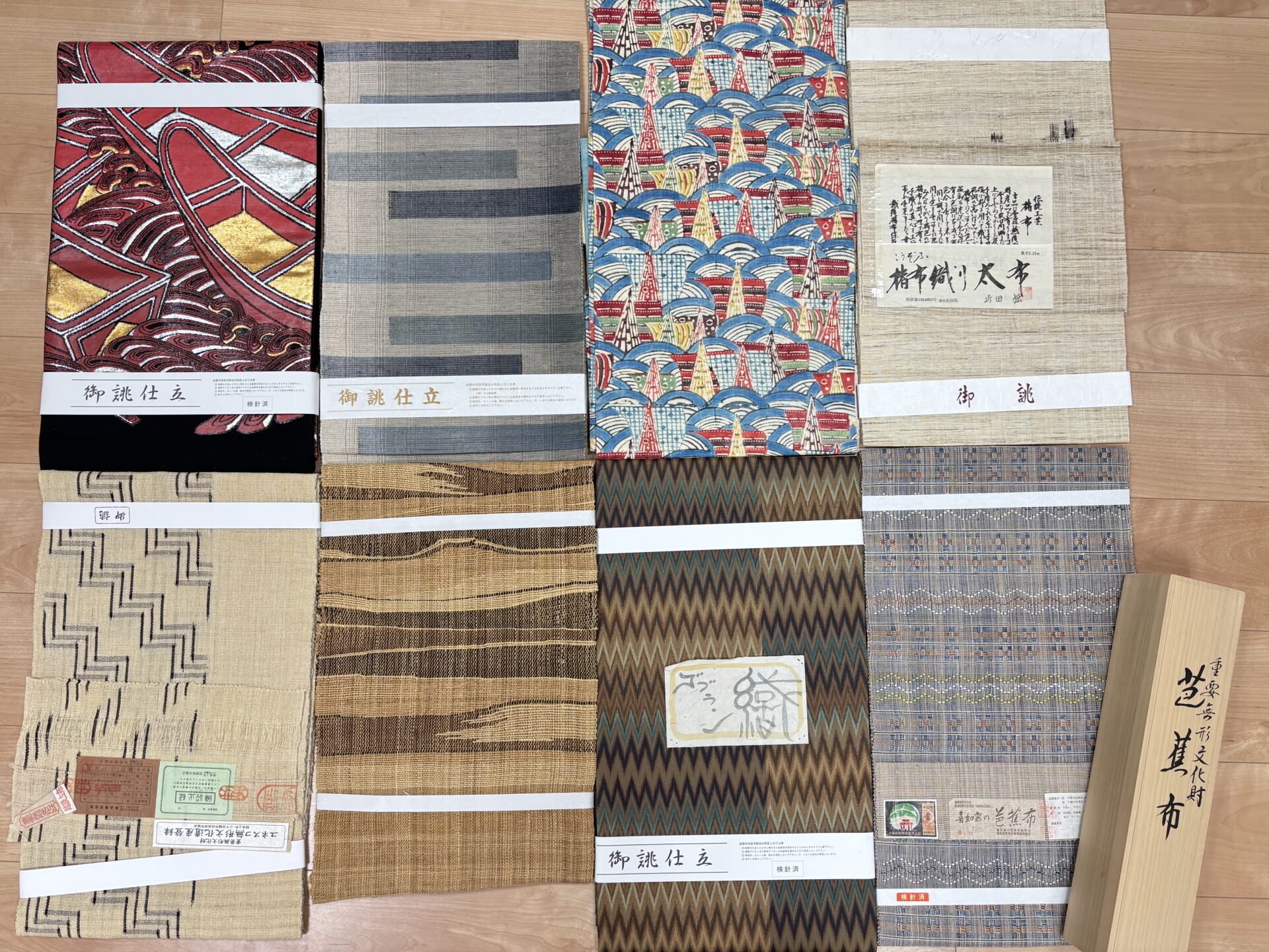大阪市北区のお客様より、芭蕉布、越後上布、八重山上布、夏黄八丈などのお着物や、芭蕉布、越後上布、曾根武勇さんの帯などを訪問高価お買取りさせていただきました。