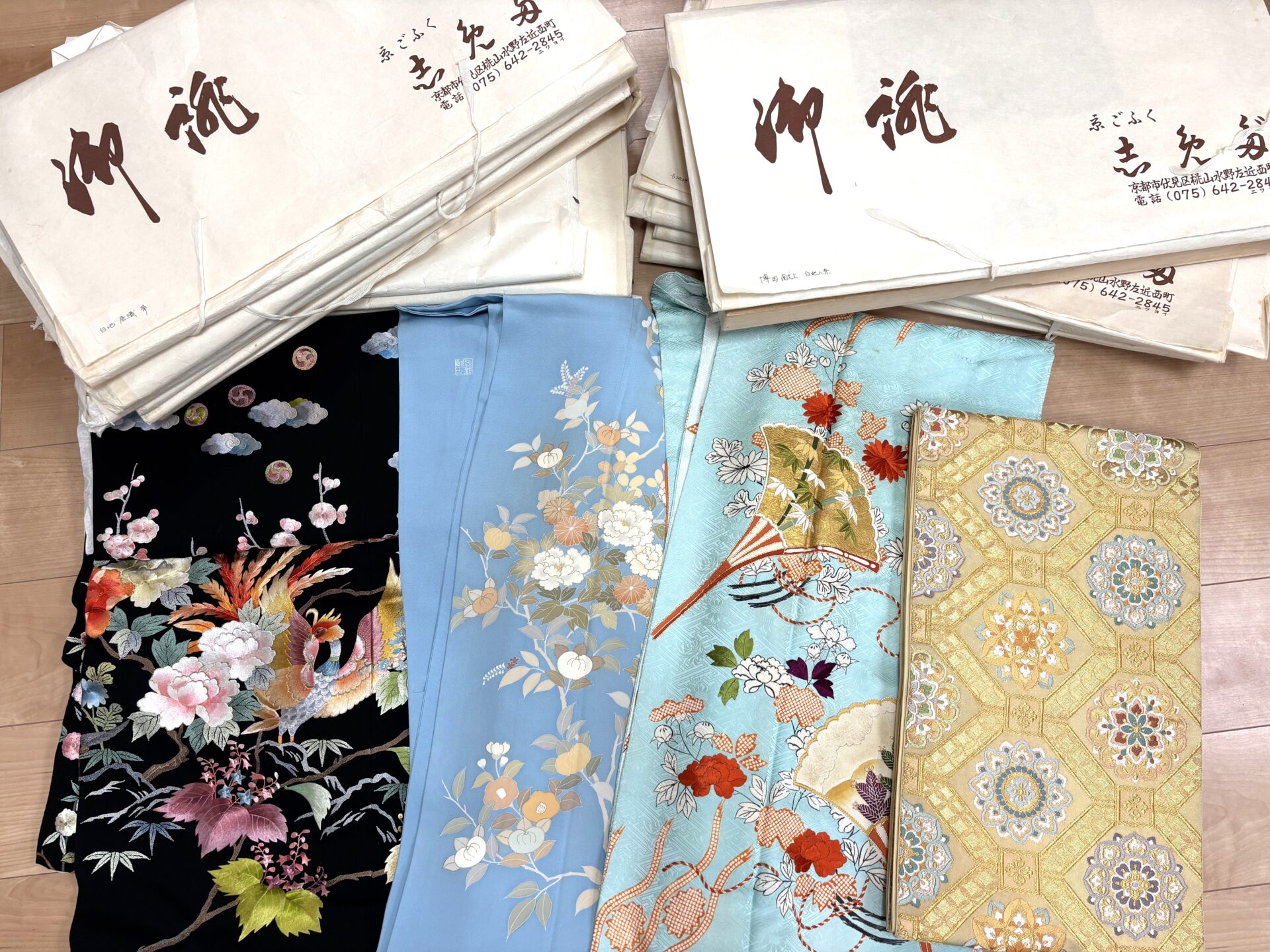 美しい柄行きの千總の訪問着、格式高く華やかなに志田の振袖、豪華で力強い刺繍の打掛など、他にもたくさんのセンスの良いお着物や帯をお譲りいただきました。