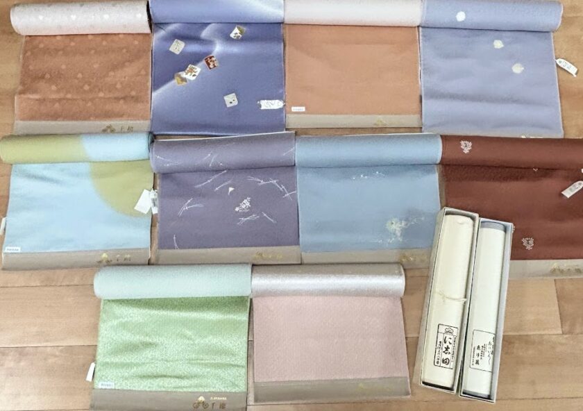 京都市左京区の業者様よりお電話にて訪問お買取りのご依頼をいただき、博多名古屋帯・捨松名古屋帯・江戸小紋着尺・花織紬の仮絵羽など、複数の未仕立て品を高価お買取りさせていただきました。 今回は、在庫処分の…