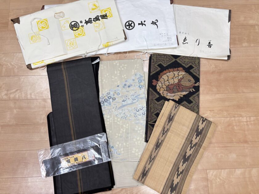 東京都池袋にお住まいでご実家が京都市北区のお客様より、訪問お買取りにて、北村武資さん、細見華岳さんの帯、本場結城紬、大島紬のお着物などを高価お買取りさせていただきました。