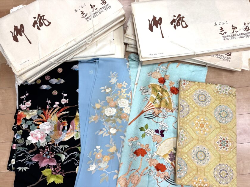 滋賀県大津市のお客様より訪問にて、千總の訪問着、に志田の振袖などを高価お買取りさせていただきました。